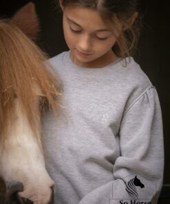 Sweat-shirt PENELOPE « Cassou » gris pour enfant. Il est doté d’un col rond, d’un passepoil gris argenté aux emmanchures, de petites fronces en haut des manches et d’une broderie Pénélope argentée sur le devant, à gauche. Matière très confortable, 100% esprit sportswear Eden by Pénélope.