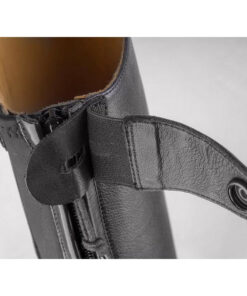 L’intérieur du mollet est fait d’E-tex: matériau technique résistant à l’eau, ayant un aspect identique au cuir et assez souple pour garantir un parfait ressenti et contact avec la selle et sa monture. Les tests montrent que ce tissu est plus résistant à l’usure que le cuir lui-même convenant ainsi à une pratique de l’équitation intensive.