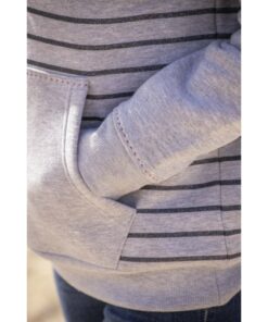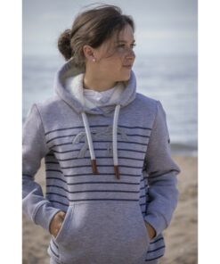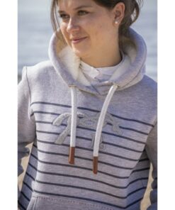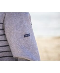 Sweat-shirt « Océane » Pénélope Collections gris rayé marine issu de la collection Saint James x Pénélope Collections.