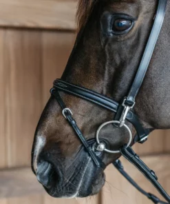 Le Bridon d’entraînement est un bridon très minimaliste qui possède de nombreux points de réglage. Il n’y a qu’une seule boucle de réglage au-dessus de la tête du cheval. Il n’y a pas de sous- gorge sur ce bridon. Le bridon est équipé d’une noseband détachable. Les montants de bridons ont des clips pour attacher facilement votre mors.