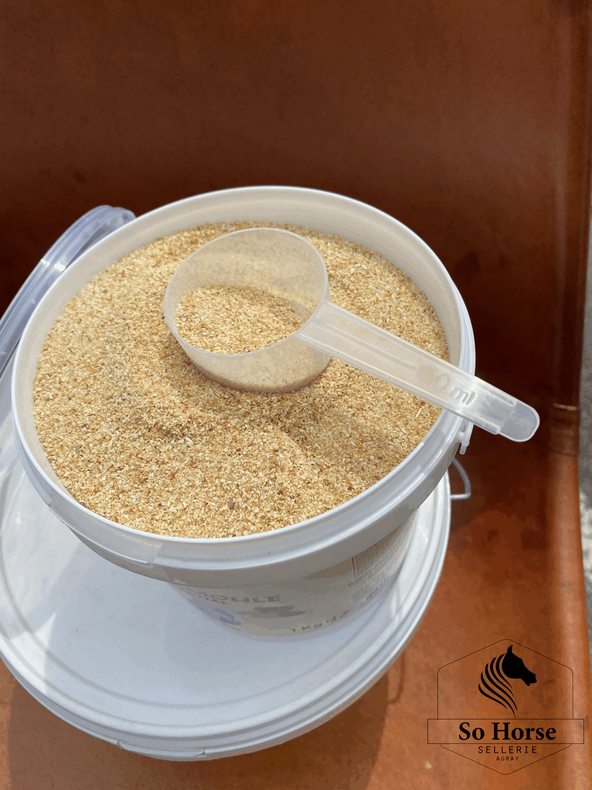 Conseils d’utilisation : En mélange avec la nourriture habituelle : Chevaux adultes : 3 à 4 cuillères à soupe/30 ml du verre doseur par jour. Poneys, Poulains : 2 à 3 cuillères à soupe/20 ml du verre doseur par jour. Conserver dans un lieu tempéré.