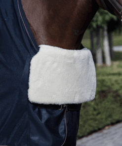 Le Horse Bib Protection Poitrail en mouton est idéal pour protéger votre cheval des frottements causés par les couvertures. Fabriqué en une seule pièce, il se pliera en deux pour venir se poser sur le devant de la couverture. Le côté en mouton sera donc placé contre le poitrail du cheval, ce qui lui offrira un maxium de confort.