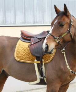 Le licol en cuir « Rope » possède une muserolle en corde qui permet d’avoir plus de contrôle sur les chevaux caractériels. La boucle sous la muserolle fait pression sur le nez du cheval si celui-ci vient à tirer trop fort, assurant plus de sécurité. Les autres parties du licol sont faites de similicuir qui est durable, facile à nettoyer et respectueux des animaux. La taille peut être réglée de chaque côté de la têtière. Un mousqueton à la sous-gorge permet à ce licol d’être mis et enlevé plus facilement. Toutes les boucles sont dorées pour être assorties à nos longes. Le licol possède une plaque avec notre logo Kentucky qui peut être retournée et gravée.