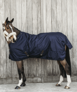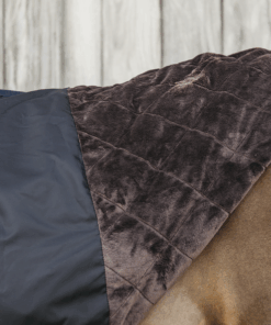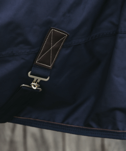 La couverture est de forme anatomique et ne comporte aucune couture sur le dos pour éviter les fuites. Grâce à la peau de lapin artificielle, la couverture se remet toujours à la bonne place après que le cheval se soit roulé. La couverture est équipée d’une fermeture autoaggripante avec 2 fermetures frontales, 2 sursangles croisées en tissu de ceinture de sécurité et une courroie de queue recouverte de plastique (pour un nettoyage facile). Pour plus de protection, il est possible d’acheter un couvre-cou séparé.