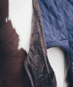 Cette couverture de marcheur a un garnissage de 160g et est idéale pour longer les chevaux ou pour les mettre dans le marcheur quand il fait froid. L’intérieur en peau de lapin artificielle offre davantage de chaleur car elle crée de minuscules poches d’air qui retiennent la chaleur corporelle du cheval. Elle offre également plus de confort, fait briller le poil de votre cheval et aide à prévenir les frottements. Les épaules sont libres et la fermeture au poitrail se compose d’une boucle classique combinée à une fermeture Velcro. Le garrot est protégé par du mouton synthétique. La couverture de marcheur est dotée de deux sur-sangles sous le ventre pour la garder bien place ainsi que d’une courroie de queue en nylon attachée à deux anneaux en D. Elle a un look très chic grâce au motif diamant et aux élégantes finition en similicuir. Elle est lavable en machine à 30 °, pas de sèche-linge.