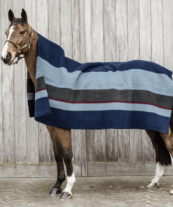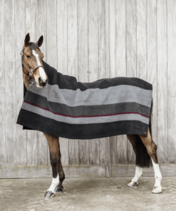 Le tissu molletonné utilisé sèche rapidement et transporte l’humidité à la surface de la couverture. La sueur et l’humidité s’évaporent rapidement sans refroidir le cheval. En hiver, votre cheval sera sec en 5 minutes, et n’attrape donc pas froid. Le tissu en polyester a l’aspect de la laine, mais contrairement à celle-ci, il vous sera facile de brosser les copeaux. En plus de cela, la couverture est plus durable et plus facile à utiliser car elle est lavable, tout gardant sa qualité.