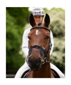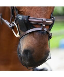 La protection de nez anti-mouches protège le nez de votre cheval contre les mouches et les autres insectes elle est idéal pour les chevaux extrêmement sensible aux insectes. Le masque peut être utilisé quotidiennement lors de vos séances mais également en concours. ne gêne ni le mors ni la respiration du cheval.