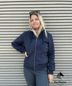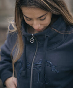 Le sweat PENELOPE Native Strass est un modèle zippé sur le devant et constitué de deux poches également zippées. Un col montant particulièrement confortable est rehaussé par deux cordons larges ton sur ton marine. Le bas de la taille et le tout des deux poignets sont confectionnés en bord-côtes élastiques qui ajoutent une touche supplémentaire de confort. Enfin, un rang de strass marine suit harmonieusement les courbes de la broderie 3D du logo Pénélope est visible sur le devant